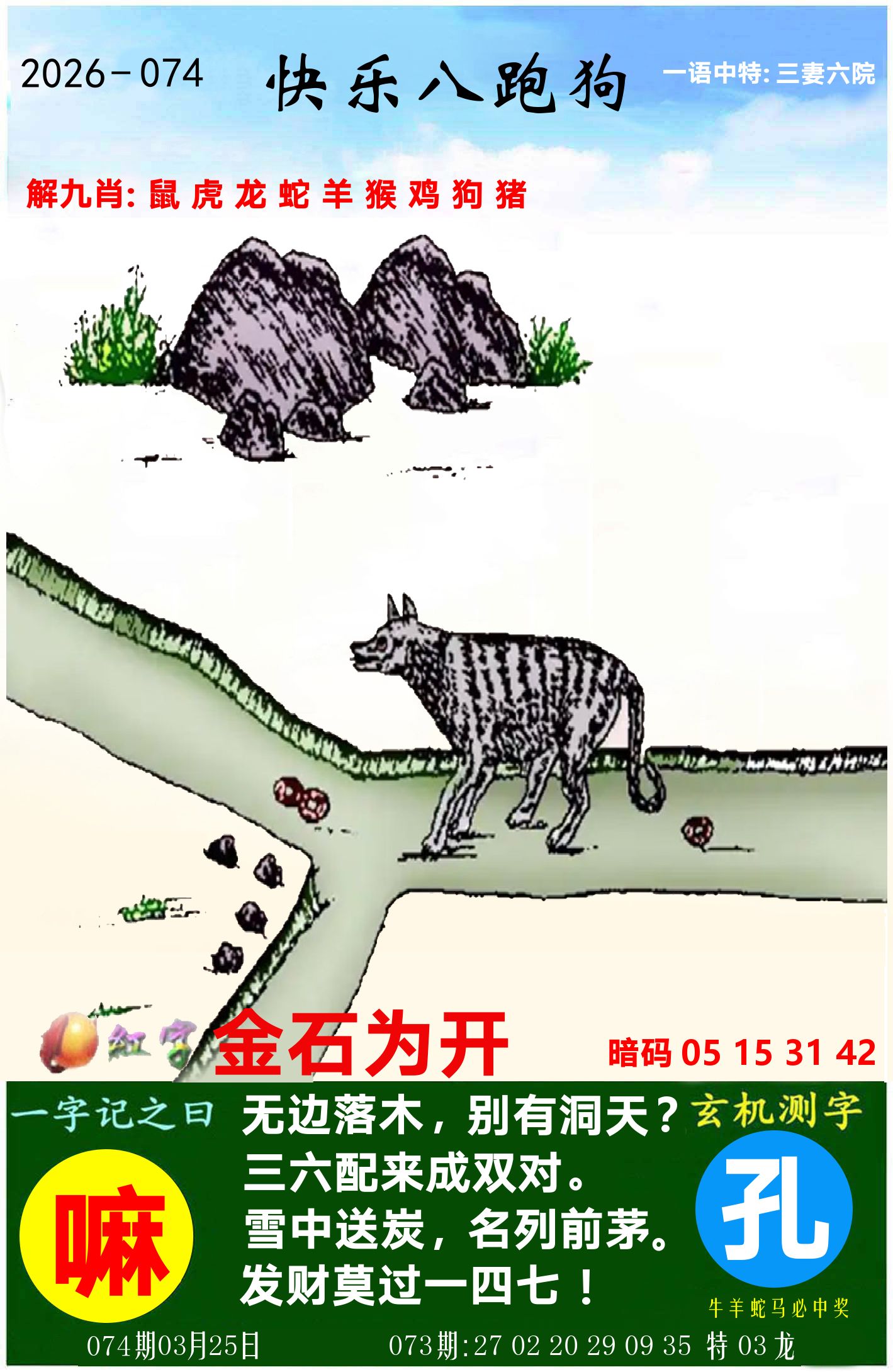 073期单双两肖:双数+猴马开:??准